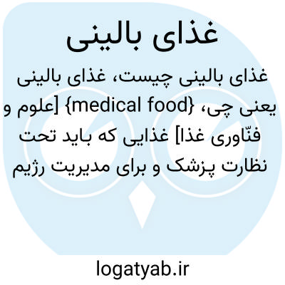 {medical food} [علوم و فنّاوری غذا] غذایی که بـاید تحت نظارت پـزشک و برای مدیریت رژیم غذایی خاص در یک بیماری یا شرایط خاص مصرف شود