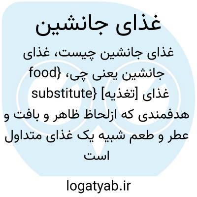 {food substitute} [تغذیه] غذای هدفمندی که ازلحاظ ظاهر و بافت و عطر و طعم شبیه یک غذای متداول است