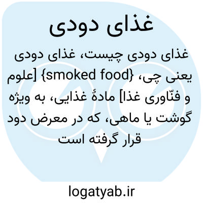 {smoked food} [علوم و فنّاوری غذا] مادۀ غذایی، به ویژه گوشت یا ماهی، که در معرض دود قرار گرفته است