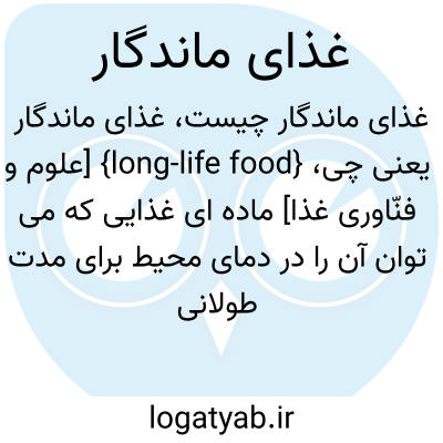 {long-life food} [علوم و فنّاوری غذا] ماده ای غذایی که می توان آن را در دمای محیط برای مدت طولانی نگهداری کرد
