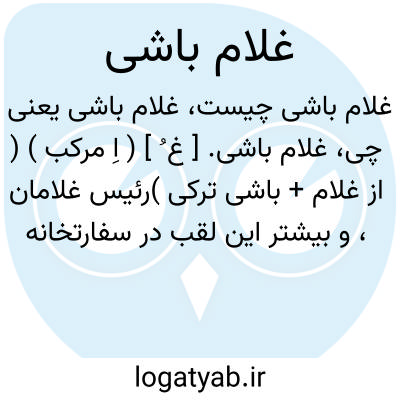 غلام باشی. [ غ ُ ] ( اِ مرکب ) ( از غلام + باشی ترکی )رئیس غلامان، و بیشتر این لقب در سفارتخانه های اجنبی برای رئیس پیشخدمتان و محترم ترین آنان مصطلح است.
