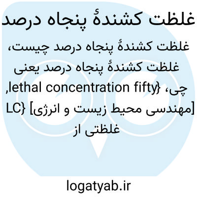 {lethal concentration fifty, LC} [مهندسی محیط زیست و انرژی] غلظتی از یک آلاینده که با آن پنجاه درصد از اندامگان های مورد آزمایش از بین میروند متـ. غلظت نیمکُش