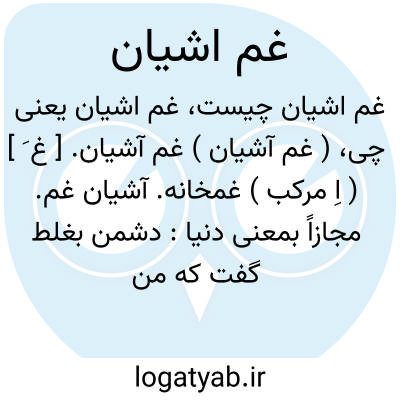 ( غم آشیان ) ( اسم ) ۱ - غم خانه آشیان اندوه ۲ - دنیا جهان.