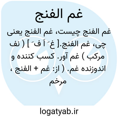 غم الفنج.[ غ َ اَ ف َ ] ( نف مرکب ) غم آور. کسب کننده و اندوزنده غم. ( از: غم + الفنج، مرخم الفنجنده بمعنی جمعکننده و اندوزنده ). رجوع به غم و الفنج شود: