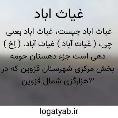 ( غیاث آباد ) غیاث آباد. ( اِخ ) دهی است جزء دهستان حومه بخش مرکزی شهرستان قزوین که در 3هزارگزی شمال قزوین قرار دارد. دامنه و معتدل است. سکنه آن 79 تن است که به فارسی و ترکی سخن میگویند. آب آن از قنات و رودخانه تأمین میشود و بازار دارد. محصول آن غلات و عدس. شغل اهالی زراعت است. راه نیمه شوسه ماشین رو دارد. ( از فرهنگ جغرافیایی ایران ج 1 ).