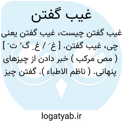 غیب گفتن. [ غ َ / غ ِ گ ُ ت َ ] ( مص مرکب ) خبر دادن از چیزهای پنهانی. ( ناظم الاطباء ). گفتن چیز نهانی. خبر دادن از غیب. عمل شخص غیبگو: چشم باز غیب میگوید. رجوع به غَیب شود. || سرّ کسی را آشکار کردن. || پیش بینی کردن در امور محتمل الوقوع. ( ناظم الاطباء ).