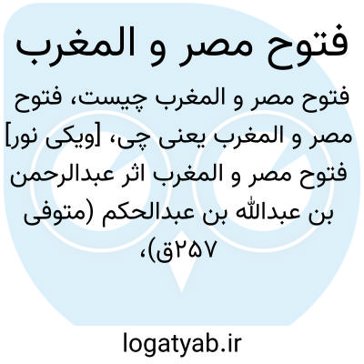 [ویکی فقه] فتوح مصر و المغرب (کتاب). «فتوح مصر و المغرب» اثر عبدالرحمن بن عبدالله بن عبدالحکم (متوفی ۲۵۷ ق)، به زبان عربی درباره تاریخ مصر و مغرب و چگونگی فتح آنها به دست مسلمانان نوشته شده است. دسترسی نویسنده به منابع و مصادر دولتی و اشراف وی به موضوعات مطرح شده باعث اهمیت کتاب شده است.این کتاب با نام های دیگری چون «فتوح مصر»، «فتوح مصر و اخبارها»، «فتوح مصر و المغرب و الاندلس» نیز نامیده شده است.