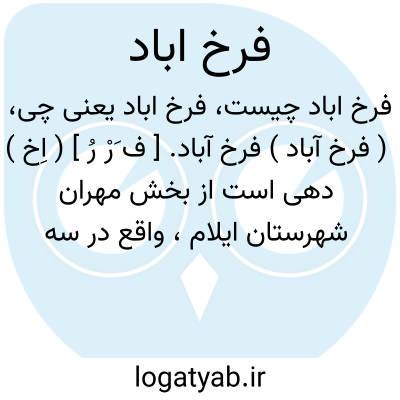 ( فرخ آباد ) فرخ آباد. [ ف َرْ رُ ] ( اِخ ) دهی است از بخش مهران شهرستان ایلام، واقع در سه هزارگزی شمال مهران، کنار رودخانه کنجان چم و مرز ایران و عراق. ناحیه ای است واقع در دشت، گرمسیر و دارای 400 تن سکنه. از رودخانه کنجان چم مشروب می شود. محصولاتش غلات و لبنیات است. اهالی به کشاورزی و گله داری گذران میکنند. راه اتومبیل رو دارد. ساکنین از طایفه رزگوش هستند. پاسگاه مرزبانی و گارد مسلح گمرکی دارد. ( از فرهنگ جغرافیایی ایران ج 5 ).