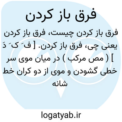 فرق باز کردن. [ ف َ ک َ دَ ] ( مص مرکب ) در میان موی سر خطی گشودن و موی از دو کران خط شانه زدن. رجوع به فرق شود.