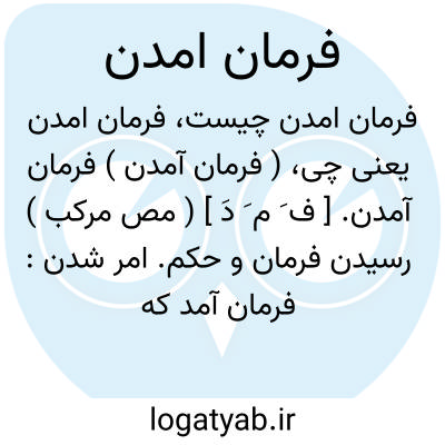( فرمان آمدن ) فرمان آمدن. [ ف َ م َ دَ ] ( مص مرکب ) رسیدن فرمان و حکم. امر شدن: فرمان آمد که یا میکائیل بر زمین رو. ( قصص الانبیاء ).