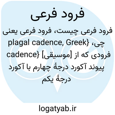 {plagal cadence, Greek cadence} [موسیقی] فرودی که از پیوند آکورد درجۀ چهارم با آکورد درجۀ یکم حاصل می شود متـ. فرود آمین Amen cadence فرود کلیسایی church cadence