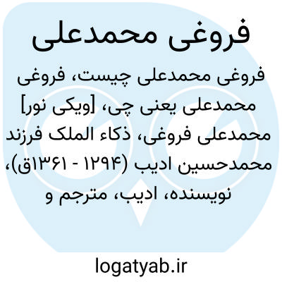 فروغی، محمّدعلی (تهران ۱۲۵۶ـ۱۳۲۱ش) فروغی، محمّدعلی فروغی، محمّدعلی فروغی، محمّدعلی فروغی، محمّدعلی فروغی، محمّدعلی (ملقّب به ذکاءالملک) دولتمرد، پژوهشگر، مترجم، و مؤسّس فرهنگستان ایران. فرزند محمدحسین فروغی است. پس از تحصیلات ابتدایی و علوم متداول زمان، برای آموختن مقدمات طب به دارالفنون تهران رفت و چندی بعد پس از رها کردن آن، به ادبیات و فلسفه روی آورد و در بیشتر رشته های جدید، اطلاعات بسیاری به دست آورد. در ۱۸سالگی در وزارت انطباعات استخدام شد و ضمن کار، به تدریس در مدارس نیز می پرداخت. با هفته نامۀ تربیت که پدرش تأسیس کرده بود (۱۲۷۵ش)، همکاری می کرد و ترجمه های خود از آثار بسیاری از نویسندگان اروپایی را در آن به چاپ می رساند. از ۱۲۷۸ش، مترجم و مدرّس مدرسۀ علوم سیاسی شد. از مهم ترین کارهای او در آن سال ها، ترجمه و چاپ کتاب هایی، نظیر اصول علم، ثروت ملل (۱۲۸۳ش) و تاریخ ملل قدیمۀ مشرق (۱۲۷۹ش) بود که در برنامۀ درسی مدارس قرار گرفت. چندی بعد به معاونت مدرسۀ علوم سیاسی و استادی درس تاریخ آن مدرسه انتخاب شد. از بنیانگذاران انجمن آثار ملی بود. در ساختن آرامگاه فردوسی و مراسم جشن هزارۀ فردوسی، که در ۱۳۱۳ش در تهران و طوس برگزار شد، نقش اساسی داشت. در ۱۳۱۴ش، فرهنگستان ایران را تأسیس کرد و خود ریاست آن را به عهده گرفت. از نمایندگان ایران در مجمع عمومی جامعۀ ملل بود، که بعد از جنگ جهانی اول، در ژنو تشکیل شد و در ۱۹۳۰ به ریاست آن مجمع برگزیده شد. سه بار به نخست وزیری رسید و سمت های مهم و حسّاس دیگری نیز احراز کرد. در ابن بابویه به خاک سپرده شده است. غزلیات سعدی (با همکاری حبیب یغمایی، ۱۳۱۸ش) و رباعیات خیام (با همکاری قاسم غنی، ۱۳۲۰ش) را تصحیح کرد. از دیگر آثارش: سیر حکمت در اروپا در ۳ جلد، (۱۳۱۰ـ۱۳۲۰ش)؛ پیام من به فرهنگستان (۱۳۱۶ش)؛ آیین سخنوری یا فن خطابه (۱۳۱۶ش)؛ حقوق اساسی یا آداب مشروطیت دول (۱۲۸۶ش)؛ دورۀ مختصر تاریخ ایران (۱۲۸۳ش)؛ جامعۀ ملل (۱۳۰۸ش)؛ تصحیح کلیات سعدی، در ۴ جلد (۱۳۲۰ش).
