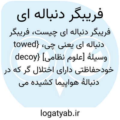 {towed decoy} [علوم نظامی] وسیلۀ خودحفاظتی دارای اختلال گر که در دنبالۀ هواپیما کشیده می شود و هدف از آن ایجاد هدف کاذب برای فریب موشک نزدیک شونده است