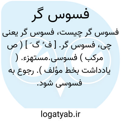 فسوس گر. [ ف ُ گ َ ] ( ص مرکب ) فسوسی.مستهزء. ( یادداشت بخط مؤلف ). رجوع به فسوسی شود.