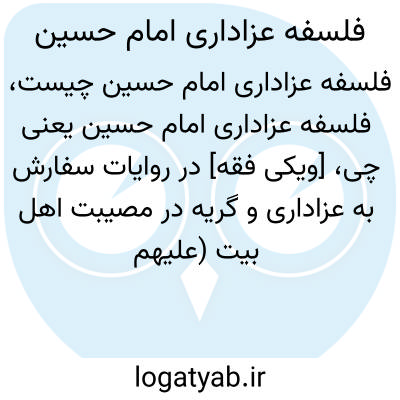 [ویکی فقه] در روایات سفارش به عزاداری و گریه در مصیبت اهل بیت (علیهم السلام)، مخصوصا امام حسین (علیه السلام) تأکید فراوانی شده است و از آنجایی که معصومین (علیهم السلام)، انسان را به کار بیهوده دعوت و امر نمی کند مسلما عزداری بر حضرات معصومین دارای فلسفه های سازنده و تربیتی متعددی می باشد، که در ادامه به چند نمونه از فلسفه عزاداری اشاره می کنیم.