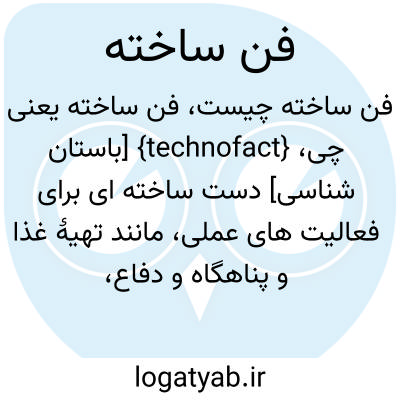 {technofact} [باستان شناسی] دست ساخته ای برای فعالیت های عملی، مانند تهیۀ غذا و پناهگاه و دفاع، که حاصل فعالیت های فنّاورانه است