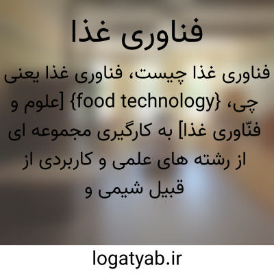 {food technology} [علوم و فنّاوری غذا] به کارگیری مجموعه ای از رشته های علمی و کاربردی از قبیل شیمی و زیست شناسی و فیزیک و مهندسی برای تبدیل و فراوری و حمل ونقل و نگهداری محصولات غذایی