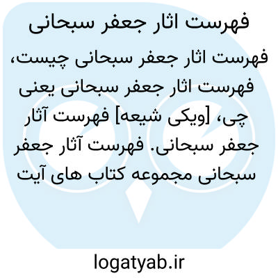 [ویکی شیعه] فهرست آثار جعفر سبحانی. فهرست آثار جعفر سبحانی مجموعه کتاب های آیت الله سبحانی (متولد ۱۳۰۸ش) از مراجع تقلید شیعه و از اساتید حوزه علمیه قم است. آیت الله سبحانی تألیفات متعددی در موضوعات دینی مانند تفسیر، حدیث، فقه، اصول، کلام، تاریخ، فلسفه، ملل ونحل، رجال، درایه، علوم ادبی، دفاع از تشیع، نقد وهابیت و موضوعات دیگر نگاشته و بیش از ۱۵۱ جلد از آثار او، در نرم افزار مجموعه آثار آیت الله سبحانی از سوی مرکز تحقیقات کامپیوتری علوم اسلامی گردآوری و منتشر شده است.
