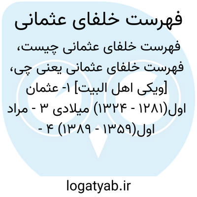 [ویکی اهل البیت] 1- عثمان اول(1281 - 1324) میلادی 3 - مراد اول(1359 - 1389) 4 - بایزید یلدرم(الصاعقه) (1389 - 1402) 5 - محمد اول(1403 - 1413 - 1421) 6 - مراد دوم (1421 - 1444 و 1446 - 1451) 7 - محمد دوم (الفاتح) (1446 و 1451 - 1481) 8 - یایزید دوم(1481 - 1512) 9 - سلیم اول(1512 - 1520)