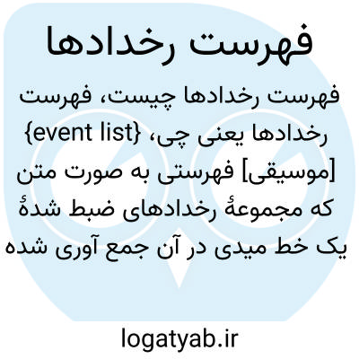 {event list} [موسیقی] فهرستی به صورت متن که مجموعۀ رخدادهای ضبط شدۀ یک خط میدی در آن جمع آوری شده باشد