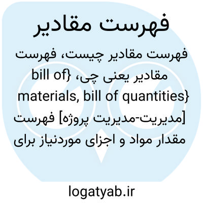 {bill of materials, bill of quantities} [مدیریت-مدیریت پروژه] فهرست مقدار مواد و اجزای موردنیاز برای انجام هر بخش از کار اختـ. ف.م. BOM, BOQ