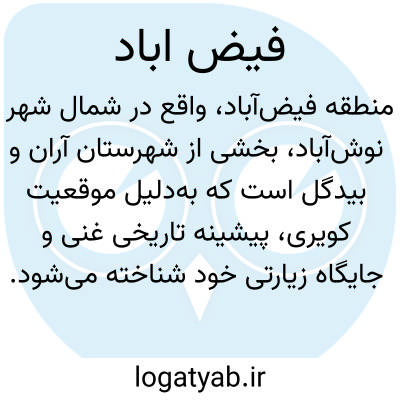 منطقه فیض‌آباد، واقع در شمال شهر نوش‌آباد، بخشی از شهرستان آران و بیدگل است که به‌دلیل موقعیت کویری، پیشینه تاریخی غنی و جایگاه زیارتی خود شناخته می‌شود. بر اساس سند تاریخی تاریخ کاشان تألیف عبدالرحیم ضرابی (۱۲۵۰ ه.ق)، این منطقه در گذشته یکی از مزارع کشاورزی وابسته به قریه آران محسوب می‌شد که اهالی آن‌جا در آن به امر زراعت اشتغال داشتند. با این حال، کشفیات اخیر باستان‌شناسان دانشگاه تهران، وجود ارگی متعلق به دوران ایلخانی با قدمتی حدود ۷۰۰ سال را در این منطقه آشکار ساخته است. این اثر ارزشمند تاریخی با شماره ۱۳۵۹۶ در فهرست آثار ملی ایران به ثبت رسیده است.