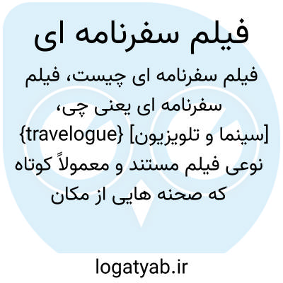 {travelogue} [سینما و تلویزیون] نوعی فیلم مستند و معمولاً کوتاه که صحنه هایی از مکان های ناآشنا و دورافتاده و جالب یک سفر را به تصویر می کشد