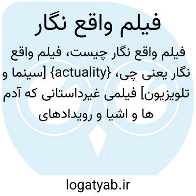 {actuality} [سینما و تلویزیون] فیلمی غیرداستانی که آدم ها و اشیا و رویدادهای واقعی را بدون دخل و تصرف و موضع گیری خاص به نمایش درمی آورد