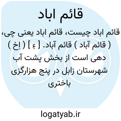 ( قائم آباد ) قائم آباد. [ ءِ ] ( اِخ ) دهی است از بخش پشت آب شهرستان زابل در پنج هزارگزی باختری بنجار و سه هزارگزی راه مالرو زابل به افضل آباد. در جلگه واقع شده و هوای آن گرم معتدل است و 137 تن سکنه دارد که شیعه هستند و به فارسی و بلوچی تکلم میکنند. آب آن از رودخانه هیرمند است و محصولات آن غلات و شغل اهالی زراعت و صنایع دستی آنان گلیم و کرباس بافی و راه آن مالرو است. ( از فرهنگ جغرافیایی ایران ج 8 ).