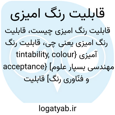 {tintability, colour acceptance} [مهندسی بسپار علوم و فنّاورى رنگ] قابلیت پوش رنگ پایۀ رنگ آمیزه یا پوش رنگ سفید در پذیرش رنگ بخش های مختلف