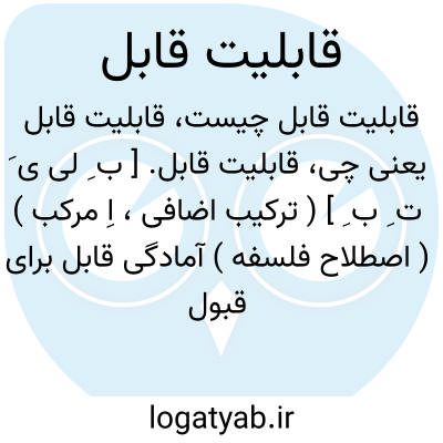 قابلیت قابل. [ ب ِ لی ی َ ت ِ ب ِ ] ( ترکیب اضافی، اِ مرکب ) ( اصطلاح فلسفه ) آمادگی قابل برای قبول امری که از فاعل صادر میشود، در برابر فاعلیت فاعل ( اصطلاح فلسفه ).