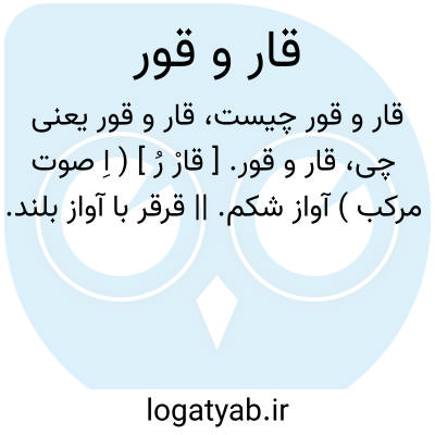 قار و قور. [ قارْ رُ ] ( اِ صوت مرکب ) آواز شکم. || قرقر با آواز بلند.