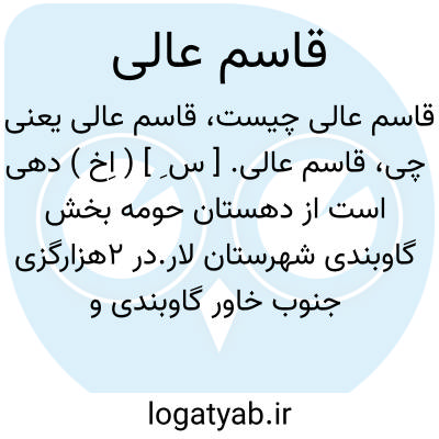 قاسم عالی. [ س ِ ] ( اِخ ) دهی است از دهستان حومه بخش گاوبندی شهرستان لار.در 2هزارگزی جنوب خاور گاوبندی و کنار شوسه سابق بوشهر به لنگه و در جلگه واقع است. هوای آن گرم مالاریائی است. 275 تن سکنه دارد. آب آن از چاه وباران و محصول آن غلات و خرما و تنباکو و صیفی و شغل اهالی زراعت است. ( از فرهنگ جغرافیائی ایران ج 7 ).