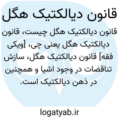 [ویکی فقه] قانون دیالکتیک هگل، سازش تناقضات در وجود اشیا و همچنین در ذهن دیالکتیک است. روش دیالکتیکی شامل سه مرحله می باشد که معمولا “موضوع، ضد موضوع و ترکیب می نامند. وی سه مرحله را تصدیق، نفی، نفی در نفی می نامد. ” از نظر هگل شدن یا صیرورت نه وجود است و نه عدم، ترکیبی از این دو می باشد.