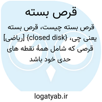 {closed disk} [ریاضی] قرصی که شامل همۀ نقطه های حدی خود باشد