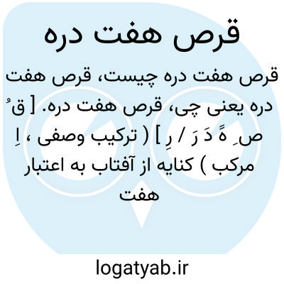 قرص هفت دره. [ ق ُ ص ِ هََ دَ رَ / رِ ] ( ترکیب وصفی، اِ مرکب ) کنایه از آفتاب به اعتبار هفت آسمان. ( آنندراج ).