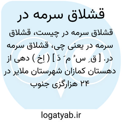 قشلاق سرمه در. [ ق ِ س ُ م َ دَ ] ( اِخ ) دهی از دهستان کمازان شهرستان ملایر در 24 هزارگزی جنوب ملایر و 9 هزارگزی جنوب راه شوسه ملایر به اراک. موقع جغرافیایی آن کوهستانی و هوای آن معتدل مالاریایی است. سکنه آن 102 تن است. آب آن از چشمه و محصول آن غلات، دیم، و شغل اهالی زراعت و صنایع دستی زنان قالی بافی است. راه مالرو دارد. ( از فرهنگ جغرافیایی ایران ج 5 ).