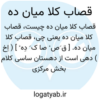 قصاب کلا میان ده. [ ق َص ْ صا ک َ دِه ْ ] ( اِخ ) دهی است از دهستان ساسی کلام بخش مرکزی شهرستان بابل واقع در 12000 گزی جنوب باختری بابل و 3500 گزی جنوب شوسه بابل به آمل. موقع جغرافیایی آن دشت، معتدل مرطوب مالاریایی است. سکنه آن 130 تن است. آب آن از رودخانه کلارودبی و محصول آن برنج، غلات، صیفی، پنبه و شغل اهالی زراعت است. راه مالرو دارد. ( از فرهنگ جغرافیایی ایران ج 3 ).