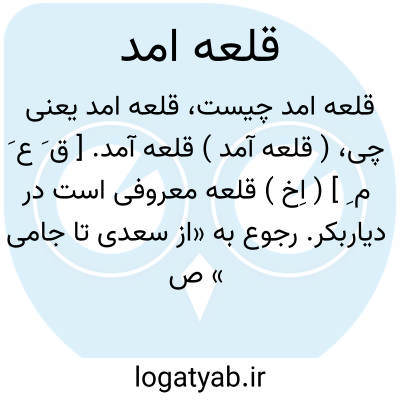 ( قلعه آمد ) قلعه آمد. [ ق َ ع َ م ِ ] ( اِخ ) قلعه معروفی است در دیاربکر. رجوع به «از سعدی تا جامی » ص 445 شود.