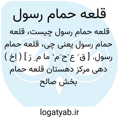 قلعه حمام رسول. [ ق َ ع َح َم ْ ما م ِ رَ ] ( اِخ ) دهی مرکز دهستان قلعه حمام بخش صالح آباد شهرستان مشهد، واقع در 36هزارگزی جنوب باختری صالح آباد. موقع جغرافیایی آن دامنه و هوای آن معتدل است. سکنه آن 364 تن آب آن از قنات و محصول آن غلات، ذرت، پنبه و شغل اهالی زراعت و مالداری و قالیچه بافی است. راه اتومبیل رو دارد و ساکنین از طوایف تیموری میباشند. ( از فرهنگ جغرافیایی ایران ج 9 ).