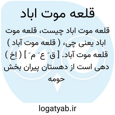 ( قلعه موت آباد ) قلعه موت آباد. [ ق َ ع َ م َ ] ( اِخ ) دهی است از دهستان پیران بخش حومه شهرستان مهاباد، واقع در 65هزارگزی جنوب باختری مهاباد و 8هزارگزی جنوب خاوری شوسه ٔخانه به نقده. موقع جغرافیایی آن جلگه و هوای آن معتدل سالم است. سکنه آن 220 تن است. آب آن از رودخانه لاوین و محصول آن غلات، توتون، حبوبات و شغل اهالی زراعت و گله داری و صنایع دستی زنان جاجیم بافی است. راه ارابه رو دارد. ( از فرهنگ جغرافیایی ایران ج 4 ).