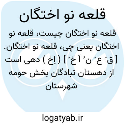 قلعه نو اختگان. [ ق َ ع َ ن ُ اَ خ َ ] ( اِخ ) دهی است از دهستان تبادگان بخش حومه شهرستان مشهد، موقع جغرافیایی آن جلگه و هوای آن معتدل است. سکنه آن 63 تن است. آب آن از رودخانه و محصول آن غلات، و شغل اهالی زراعت و مالداری است. راه اتومبیل رو دارد. ( از فرهنگ جغرافیایی ایران ج 9 ).