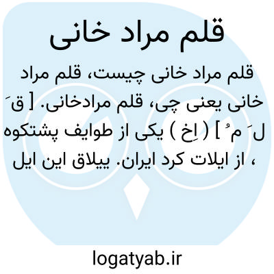 قلم مرادخانی. [ ق َ ل َ م ُ ] ( اِخ ) یکی از طوایف پشتکوه، از ایلات کرد ایران. ییلاق این ایل زرین آبادو قشلاق آنان ونه است. ( از جغرافیای سیاسی کیهان ).