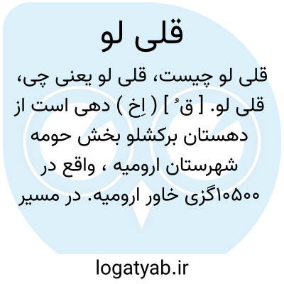 قلی لو. [ ق ُ ] ( اِخ ) دهی است از دهستان برکشلو بخش حومه شهرستان ارومیه، واقع در 10500گزی خاور ارومیه. در مسیر شوسه کلمانخانه به ارومیه. موقع جغرافیایی آن جلگه و هوای آن معتدل مالاریایی است. سکنه آن 118 تن است. آب آن از شهر چای و محصول آن غلات، انگور، حبوبات، توتون و چغندرو شغل اهالی زراعت و صنایع دستی زنان جوراب بافی است. راه شوسه دارد. ( از فرهنگ جغرافیایی ایران ج 4 ).