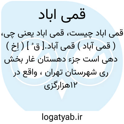 ( قمی آباد ) قمی آباد.[ ق ُ ] ( اِخ ) دهی است جزء دهستان غار بخش ری شهرستان تهران، واقع در 12هزارگزی جنوب خاوری شهر ری و کنار راه آهن و یک هزارگزی راه شوسه ورامین. موقع جغرافیایی آن جلگه و هوای آن معتدل است. سکنه آن 225 تن است. آب آن از قنات و محصول آن غلات، صیفی، چغندر قند و شغل اهالی زراعت است. اطفال ده از دبستان طالب آباداستفاده میکنند. ( از فرهنگ جغرافیایی ایران ج 1 ).