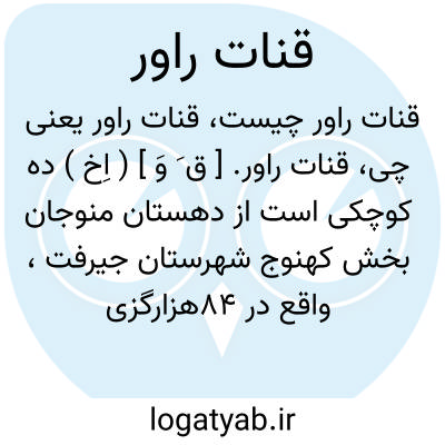 قنات راور. [ ق َ وَ ] ( اِخ ) ده کوچکی است از دهستان منوجان بخش کهنوج شهرستان جیرفت، واقع در 84هزارگزی کهنوج و 3 هزارگزی خاور راه فرعی کهنوج به میناب، سکنه آن 30 تن است. ( از فرهنگ جغرافیایی ایران ج 8 ).