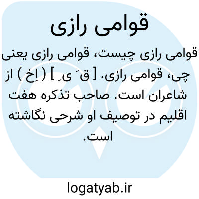 قوامی رازی. [ ق َ ی ِ ] ( اِخ ) از شاعران است. صاحب تذکره هفت اقلیم در توصیف او شرحی نگاشته است. این ابیات بدو منسوب است: