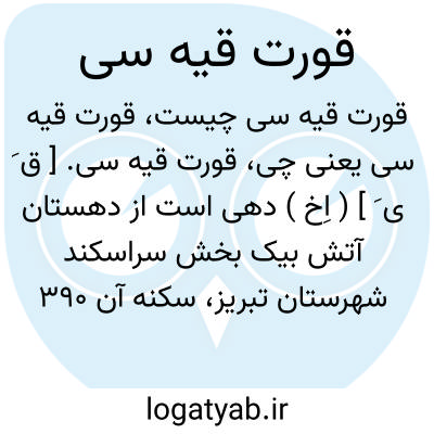 قورت قیه سی. [ ق َ ی َ ] ( اِخ ) دهی است از دهستان آتش بیک بخش سراسکند شهرستان تبریز، سکنه آن 390 تن. آب آن از چشمه. محصول آن غلات، حبوب و شغل اهالی زراعت و گله داری است. راه مالرو دارد. ( از فرهنگ جغرافیایی ایران ج 4 ).
