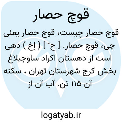 قوچ حصار. [ ح َ ] ( اِخ ) دهی است از دهستان اکراد ساوجبلاغ بخش کرج شهرستان تهران، سکنه آن 115 تن. آب آن از قنات. محصول آن غلات، لبنیات و شغل اهالی زراعت است. راه مالرو دارد و از طریق سرای شاه دوست ماشین رو است. ( از فرهنگ جغرافیایی ایران ج 1 ).