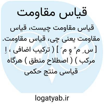 قیاس مقاومت. [ س ِ م ُ وِ م َ ] ( ترکیب اضافی، اِ مرکب ) ( اصطلاح منطق ) هرگاه قیاسی منتج حکمی باشد و خواهند که منع آن قیاس کنند به ایراد قیاسی دیگر که منتج مقابل مقدمه باشد از قیاس اول که اساس آن قیاس بر آن مقدمه است، مانند کبری در شکل اول یا مقدمه کلی در اقترانی که یک مقدمه از او جزوی باشد تا با بطلان آن مقدمه منع قیاس اول کرده باشند قیاس دوم را قیاس مقاومت خوانند. ( فرهنگ فارسی معین از اساس الاقتباس ص 336 ).